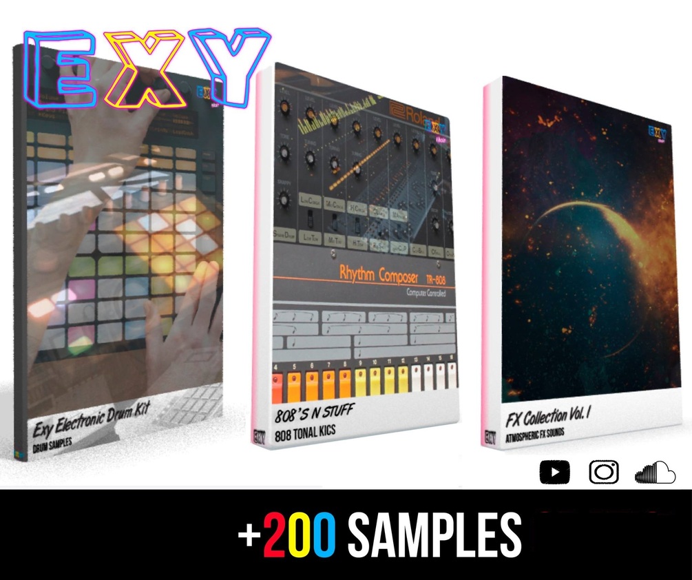 Complete Suite for Production. including more than 200 samples on 3 packs: 808's n Stuff (24) Electronic Drum Kit (125) Fx's Collection Vol. 1 (+60)